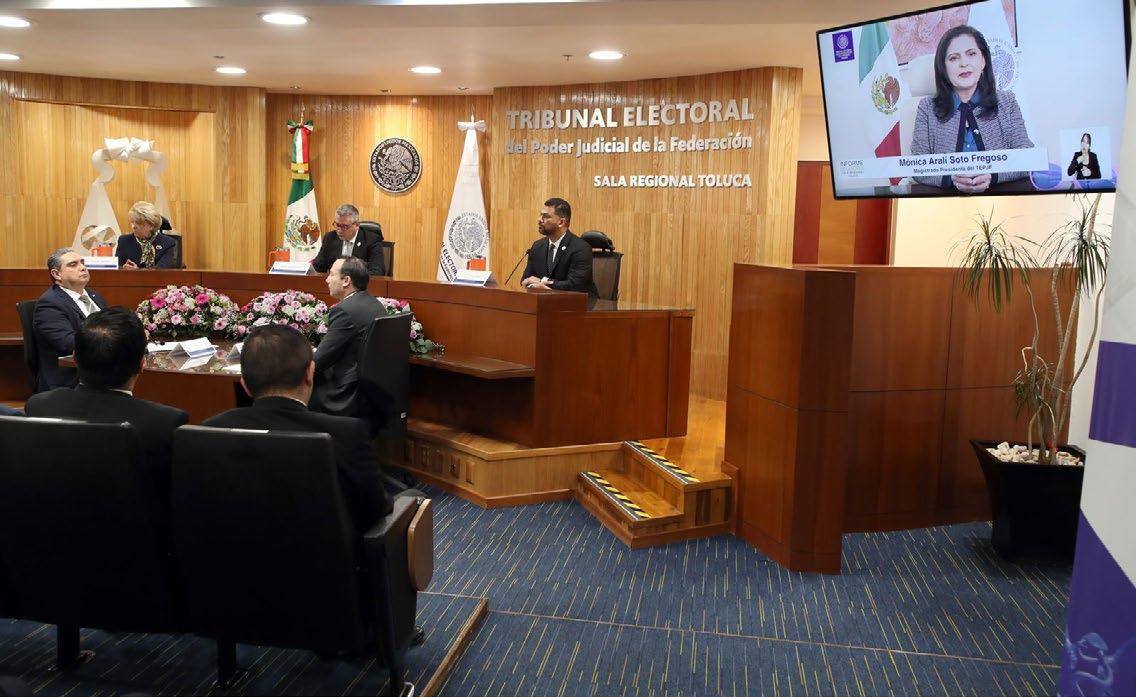 Al encabezar la sesión solemne en que se presentó el Informe de Labores 2023-2024 de la Sala Regional Toluca del TEPJF, Soto Fregoso sostuvo que es imperativo rechazar cualquier menosprecio hacia las sentencias de este órgano jurisdiccional, pues no son meras opiniones, sino decisiones que garantizan el cumplimiento de la ley y la voz que enuncia los ideales democráticos de la Constitución.