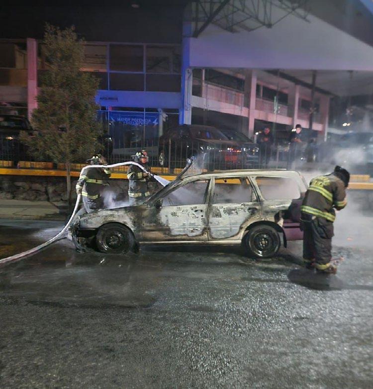 Toluca, Méx.- Elementos de la Dirección General de Seguridad y Protección de Toluca y del Cuerpo de Bomberos respondieron de inmediato al incendio de un Nissan Tsubame blanco en la intersección de Calle 5 de Mayo y Torres Valle.