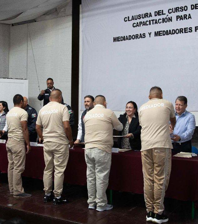 de Control Penitenciario, agradeció la colaboración interinstitucional con el PJEdomex a favor de la paz social, que desde 2016 ha logrado más de 3 mil mediaciones con ocho mil personas beneficiadas en centros de reinserción social. Reconoció la dedicación y entrega de las y los PPL´s destacando que con su esfuerzo, ellas y ellos servirán a la comunidad penitenciaria. Al finalizar la entrega de constancias, Valls Esponda y Martínez Mendoza reinauguraron la sala de Mediación en