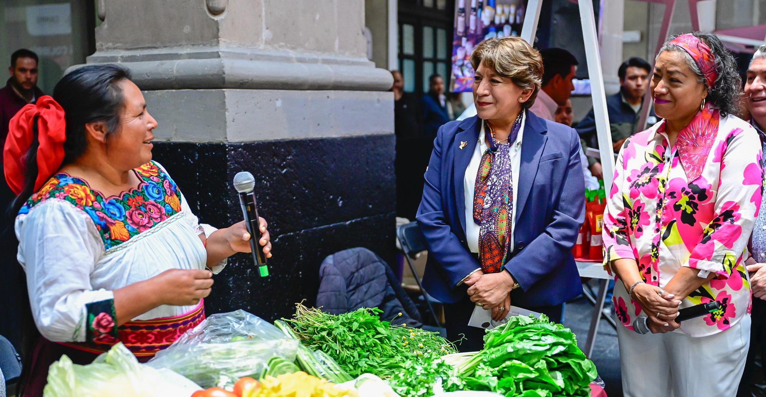 *La gobernadora Delfina Gómez Álvarez abrió las puertas del Palacio de Gobierno para que 24 productores del campo de 18 municipios realicen la venta de miel, queso, amaranto, café, hortalizas, pinole, conservas y jabones artesanales.