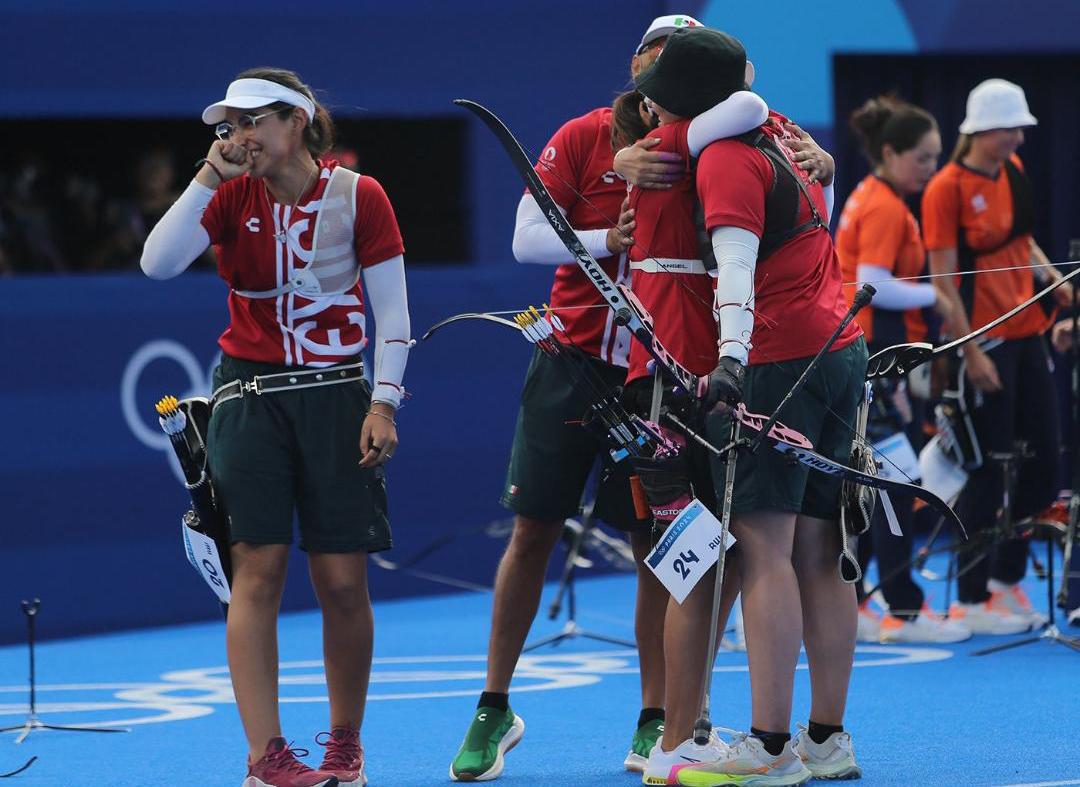 momentánea de 26 a 28. En la segunda tanda, las neerlandesas sumaron 9, 8 y 9, pero las mexicanas aprovecharon la oportunidad y con un diez, un nueve y otro nueve cerraron el set con una pizarra de 52 a 56. El cuarto y decisivo set estuvo cargado de emoción. Países Bajos inició con un diez perfecto y dos nueves sólidos, mientras que México respondió con un nueve, un ocho y un diez perfecto. En la segunda tanda la tensión aumentó cuando las neerlandesas marcaron 7, 9 y 8, pero las mexicanas no se dejaron intimidar y con tiros perfectos de Alejandra Valencia, Ángela Ruiz y Ana Paula Vázquez, lograron una pizarra final de 52 a 57.