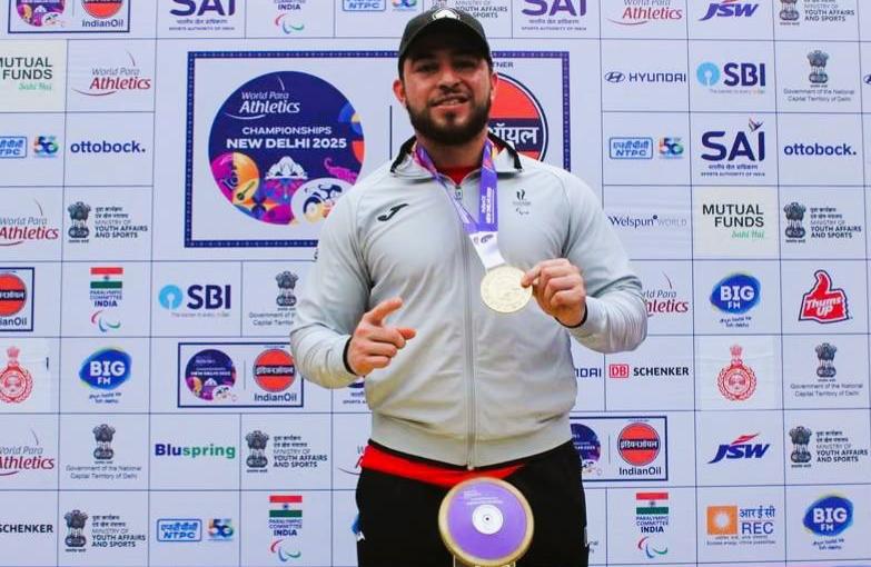 Nueva Delhi, India.- El seleccionado mexicano de los Juegos Paralímpicos París 2024, Luis Carlos López Valenzuela rompió el récord del Campeonato Mundial de Para Atletismo en la final de lanzamiento de disco F37 y se coronó con un registro de 56.59 metros, en Nueva Delhi 2025, justa que se realiza en India.