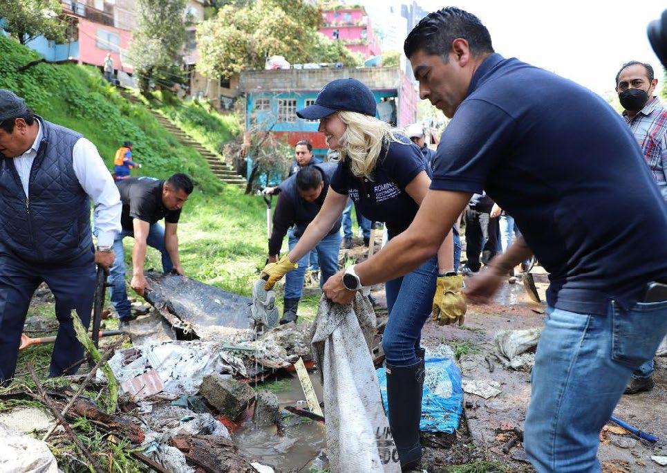 En respuesta a la convocatoria del Gobierno del Estado de México, se sumaron también servidores públicos del ayuntamiento de Metepec, así como personal del sistema educativo, vecinos de la zona y empresarios, quienes, con la misma misión, unieron esfuerzos y colectivamente trabajaron para retirar desechos de la vía pública.