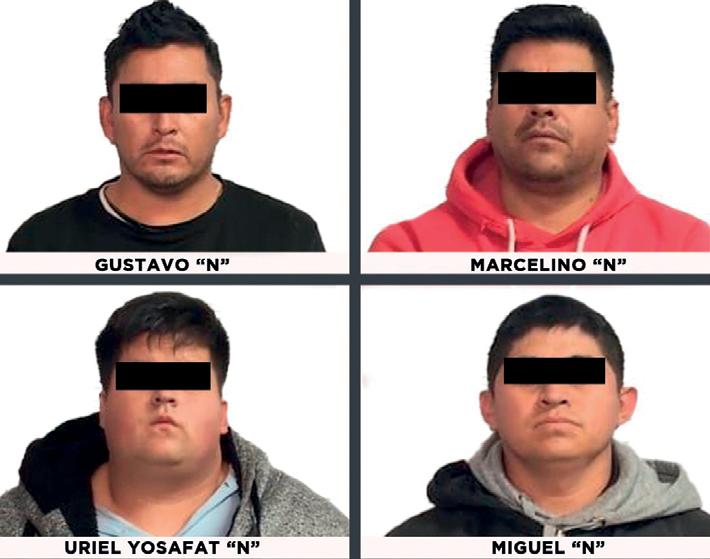 Miguel “N”, Gustavo “N”, Uriel Yosafat “N” y Marcelino “N”, fueron detenidos como resultado de una investigación por el robo de una motocicleta, hechos ocurridos el pasado 8 de noviembre, en el municipio de Ecatepec, cuando la víctima fue abordada por los cuatro detenidos y dos personas más, un masculino y una femenina, quienes la agredieron a golpes con unos palos y posteriormente la amenazaron con un arma de fuego para desapoderarla de la motocicleta y huir del lugar.
