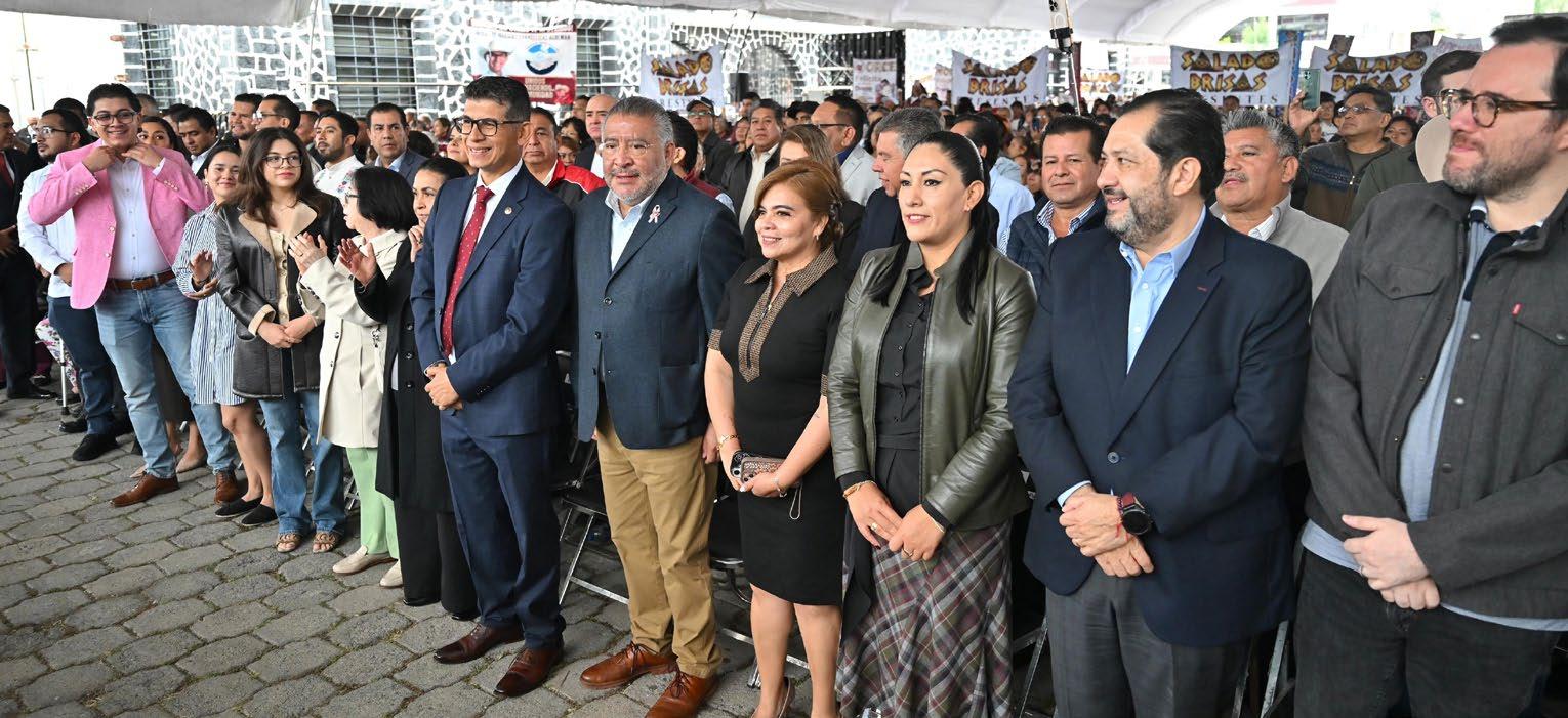 La presidenta destacó la creación de rutas para la salud, con un 90% de abasto de medicamentos en niveles primario y secundario, así como el aumento del 10% al salario de los maestros y la eliminación del examen Comipems.