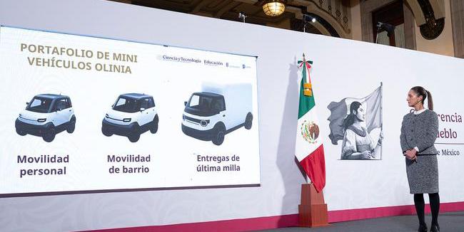 Olinia será la primera armadora de mini vehículos eléctricos desarrollados en México, cuyo objetivo es brindar una opción de movilidad urbana segura, eficiente y sustentable, al alcance de millones de mexicanos y mexicanas, así lo aseguró la presidenta de México y agregó que se diseñarán tres modalidades de mini vehículos: movilidad personal; movilidad de barrio; y de movilidad de entregas de última milla; tendrán un precio estimado de entre 90 y 150 mil pesos dependiendo del modelo “Hasta el momento tenemos ya el equipo de trabajo; ya han avanzado. Incluso en su momento, se invitará a empresas privadas que también se han dedicado desde hace tiempo en México a producir particularmente motores