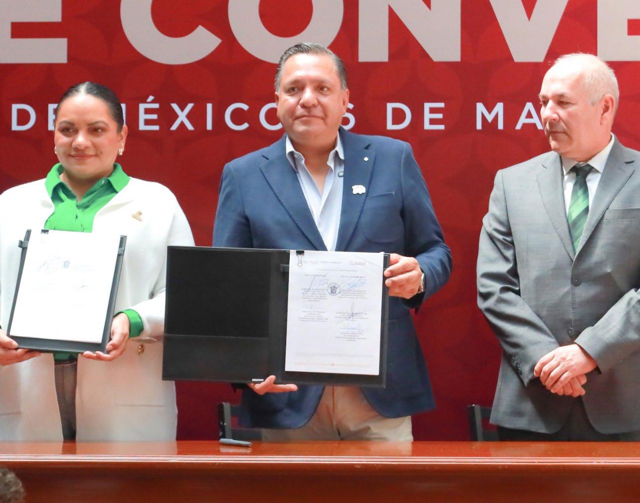 Toluca, Méx.- “El municipio de Toluca, se convierte nuevamente en referente de innovación al ser sede de la primera máquina inteligente de reciclaje que recompensa a los usuarios por depositar envases de materiales reciclables en el Estado de México”, indicó el presidente municipal Ricardo Moreno Bastida. Al encabezar la Firma de tres Convenios de Colaboración con la Secretaría del Medio Ambiente y Desarrollo Sostenible, el alcalde dijo que con ello, se establece una alianza estratégica para conservar y mejorar los recursos naturales, combatir la contaminación y fomentar una cultura ambiental responsable. Dichos convenios, establecen una cooperación entre la Secretaría del Medio Ambiente y Desarrollo Sostenible del Estado de México y la Dirección General de Medio Ambiente de Toluca. Se firmó el convenio en materia de ordenamiento ecológico territorial, que busca analizar y mejorar el uso del suelo, proteger las zonas de conservación y recuperar