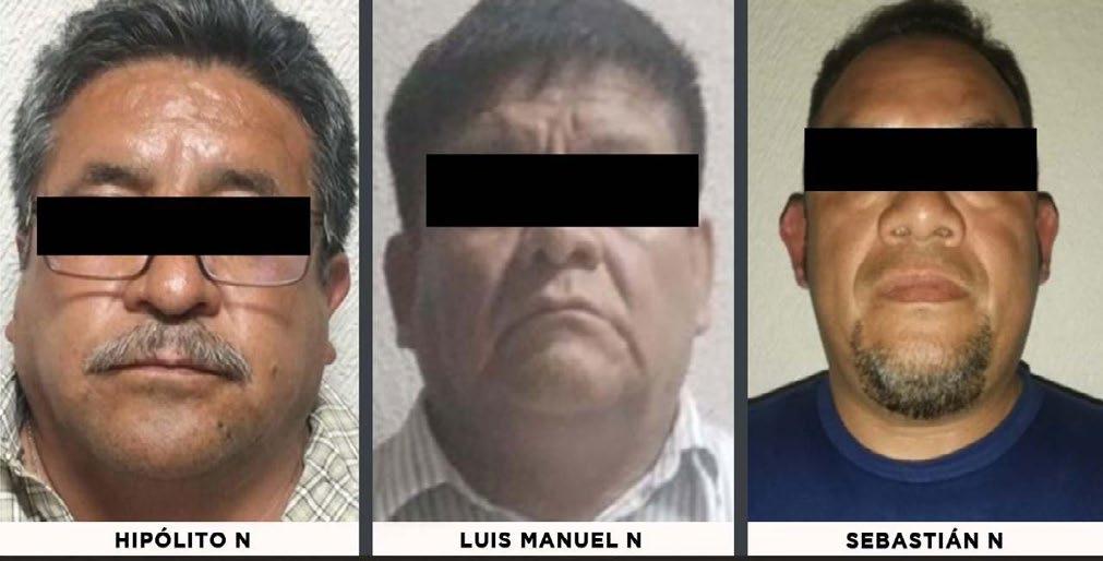 Chicoloapan, Méx.- En acción conjunta, agentes de la Fiscalía General de Justicia del Estado de México, así como elementos de la Secretaría de Seguridad estatal (SSEM) a través de sus áreas de inteligencia y de la Dirección de Seguridad Pública de Chimalhuacán, detuvieron y cumplimentaron orden de aprehensión en contra de tres integrantes del Comisariado Ejidal, identificados como Hipólito “N”, Sebastián “N”, Luis Manuel “N”, investigados por su probable intervención en el homicidio de J.F.P.R., delegado municipal del Partido Verde Ecologista de México en el municipio de Chicoloapan, así como el delito de homicidio en grado de tentativa en agravio de una víctima de iniciales L.R.Z.