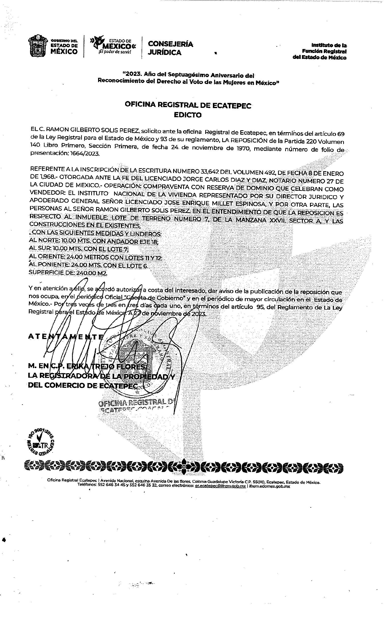 EDICTO AL MARGEN UN SELLO DEL ESTADO DE MÉXICO QUE DICE INSTITUTO DE LA FUNCIÓN REGISTRAL ESTADO LIBRE Y SOBERANO DE MÉXICO CULTURA LIBERTAD TRABAJO OFICINA REGISTRAL DE JILOTEPEC, MÉXICO. Núm. DE EXPEDIENTE 65124-9/2025 El o la (los) C. Rubén Lugo