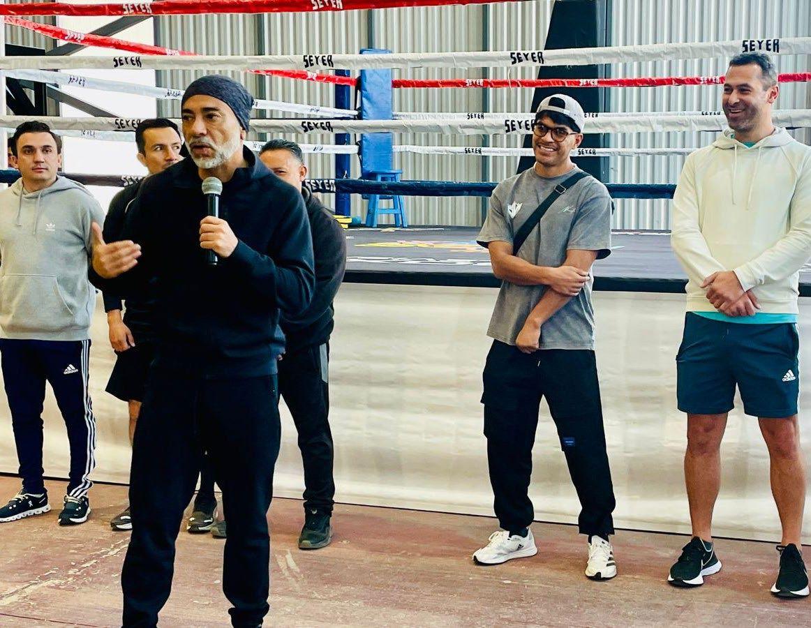 positiva, que cambien las peleas callejeras por combates deportivos, con disciplina y respeto”, expresó Flores Fernández, quien ha sido un entusiasta practicante del box. La dirección técnica estará a cargo de Gabriel “Torito” Mira, exboxeador y entrenador con amplia trayectoria, quien dirigió una sesión de entrenamiento abierta al público tras el corte del listón. Entre los asistentes destacaron figuras del boxeo nacional como Ricardo “Capi” Téllez, Adrián “Confesor” Hernández y el entrenador Gerardo Nonato, quienes convivieron con jóvenes atletas y autoridades locales.