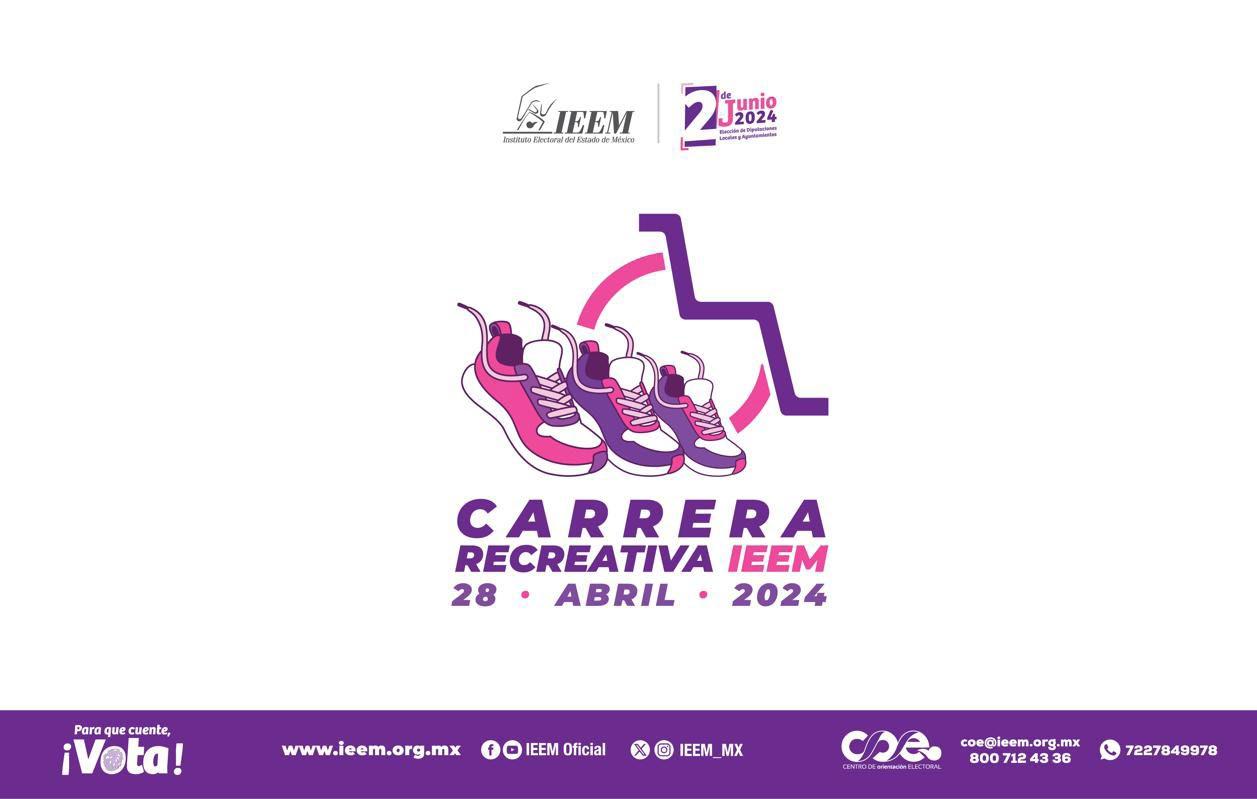 La Carrera Recreativa IEEM 2024 es una justa deportiva cuyo banderazo de salida se dará en punto de las ocho de la mañana, donde habrá tres categorías: Personas con discapacidad y Adultas Mayores; Familiar (para niñas, niños o adolescentes acompañados de un adulto) y General (personas mayores de 18 años). El registro de participantes iniciará el 8 de abril hasta agotar los disponibles para cada categoría.