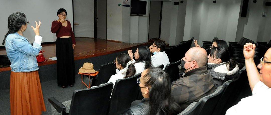 Toluca, Méx.- El curso de Lengua de Señas Mexicana que el Sistema para el Desarrollo Integral de la Familia del Estado de México (DIFEM), brinda a personal del Hospital de Ginecología y Obstetricia del Instituto Materno Infantil, facilita una comunicación adecuada para explicar a pacientes sordomudas, lo que sucede con su cuerpo, disminuir su ansiedad, brindar el tratamiento correspondiente y atender situaciones que surjan durante la estancia médica, entre otras tareas. Con este curso, médicos gineco-obstetras, enfermeras, personal de trabajo social, administración, y protección civil del hospital aprenden elementos básicos como abecedario, días de la semana, meses, números, conceptos sobre estudios, nombres de tratamientos e instrumental para revisiones; además de entender cómo se sienten las personas atendidas, programar citas y brindar indicaciones. El curso lo imparte personal de la Dirección de Atención a la Discapacidad del DIFEM, facultado en el uso de la