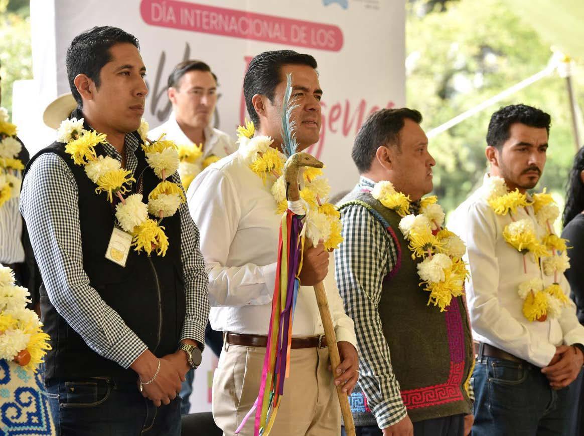 Eliud Israel Ángeles Garay, jefe del Departamento Jurídico del Instituto Nacional de los Pueblos Indígenas (INPI), recordó que esta fecha fue instaurada en 1994 por la Asamblea General de las Naciones Unidas con el objetivo de fomentar políticas públicas con perspectiva intercultural que contribuyan a cerrar las brechas de desigualdad y discriminación que enfrenta este sector de la población.Al término de la ceremonia, en la que se le entregó el bastón de mando al presidente Oscar Sánchez García, se llevó a cabo una muestra gastronómica y se presentó la Danza de los Tinkus de San Bartolomé Tlaltelulco, Metepec.