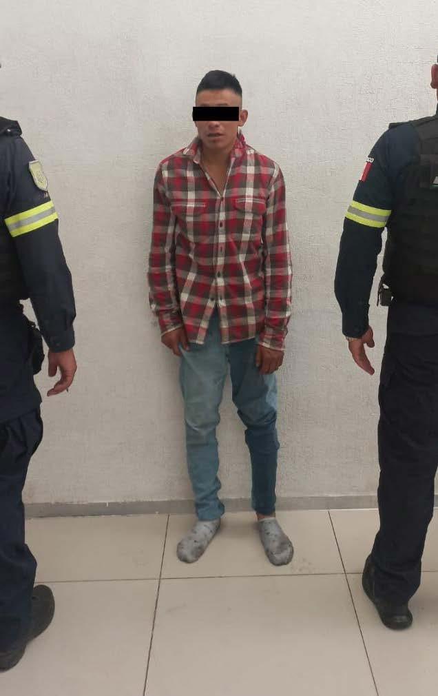 Toluca, Méx.- Derivado de las acciones implementadas para salvaguardar la integridad y patrimonio de la población mexiquense, elementos de la Secretaría de Seguridad del Estado de México (SSEM) detuvieron a un sujeto por su probable participación en el delito de robo con violencia al transporte público. Apegados a la estrategia de seguridad que se aplica en la entidad, policías estatales del EdoMéx realizaban recorridos de vigilancia en el marco del Despliegue Operativo Estratégico, Visible y Eficaz, sobre la avenida Convento de Santa Mónica casi esquina con Avenida de los Maestros, en la colonia Leandro Valle, cuando fueron requeridos por el operador de una unidad de transporte de pasajeros. El chofer les dio cuenta a los oficiales que momentos antes, un individuo abordó la camioneta y con navaja en mano violentamente amagó a las y los usuarios para despojarlos de sus pertenencias; añadió, que el aparente involucrado aún permanecía al interior. Luego de ser señalado, el sospechoso intentó huir, por lo que los efectivos iniciaron una persecución, la cual concluyó metros adelante y apegados al protocolo de actuación le realizaron una inspección.