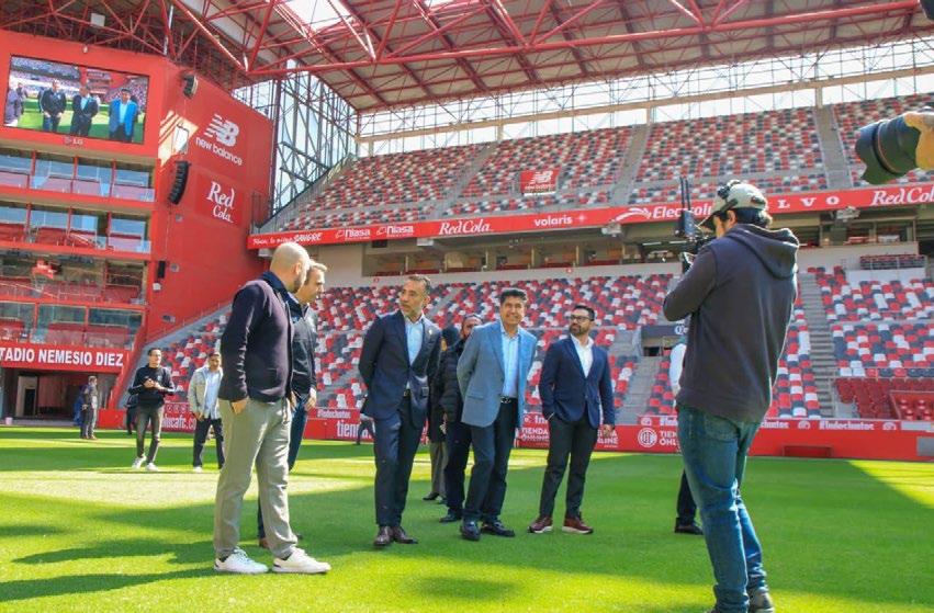 Toluca, Méx.– En un ambiente de camaradería y orgullo mexiquense, el presidente municipal de Metepec, Fernando Flores Fernández, visitó el Estadio Nemesio Diez, casa de los Diablos Rojos del Toluca, equipo que recientemente sumó su título once en la Liga MX. La visita reforzó la relación institucional que el club mantiene con Metepec y celebró el gran momento deportivo que vive la escuadra escarlata.