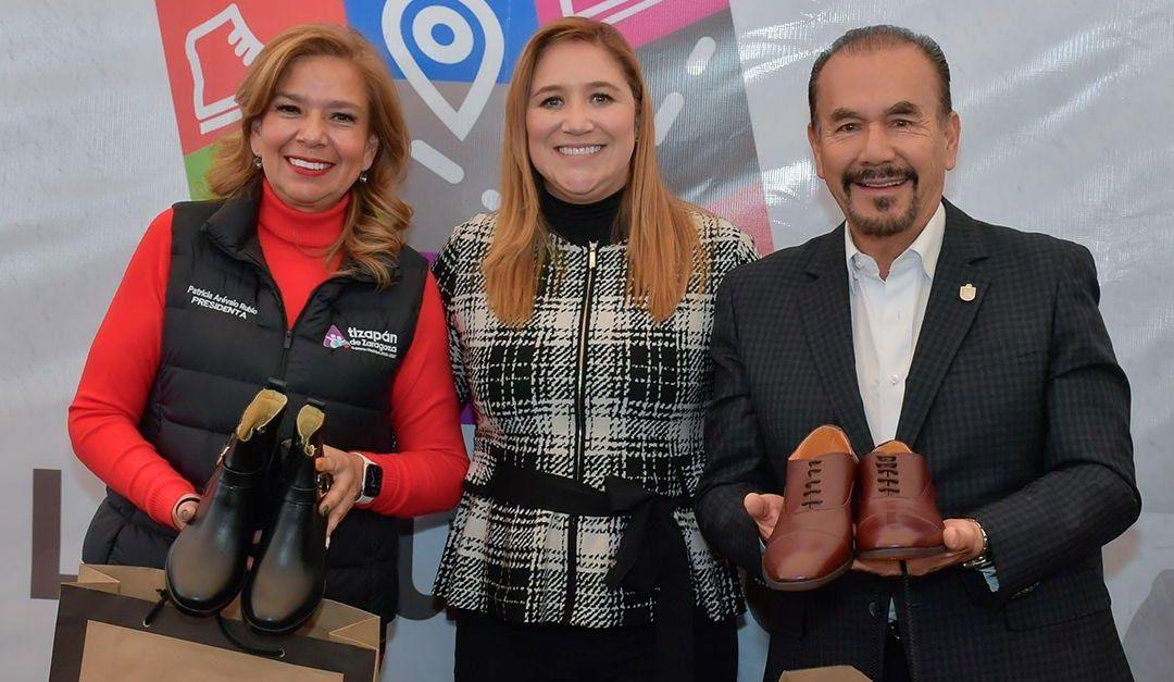 tizapán, Méx.- Acompañado por la Presidenta Honoraria del DIF, Patricia Arévalo Rubio, el alcalde Pedro Rodríguez Villegas inauguró “La Ruta del Calzado” espacio en el que los artesanos de San Mateo Atenco ofertarán sus productos, a partir de este jueves 13 y hasta el próximo lunes 17 de noviembre, en la Explanada Municipal. Al dar la bienvenida a la Presidenta Municipal de San Mateo Atenco, Ana Aurora Muñiz Neyra, Rodríguez Villegas destacó que esta feria refuerza la hermandad entre ambos municipios, e impulsa el consumo local y el talento de los artesanos.