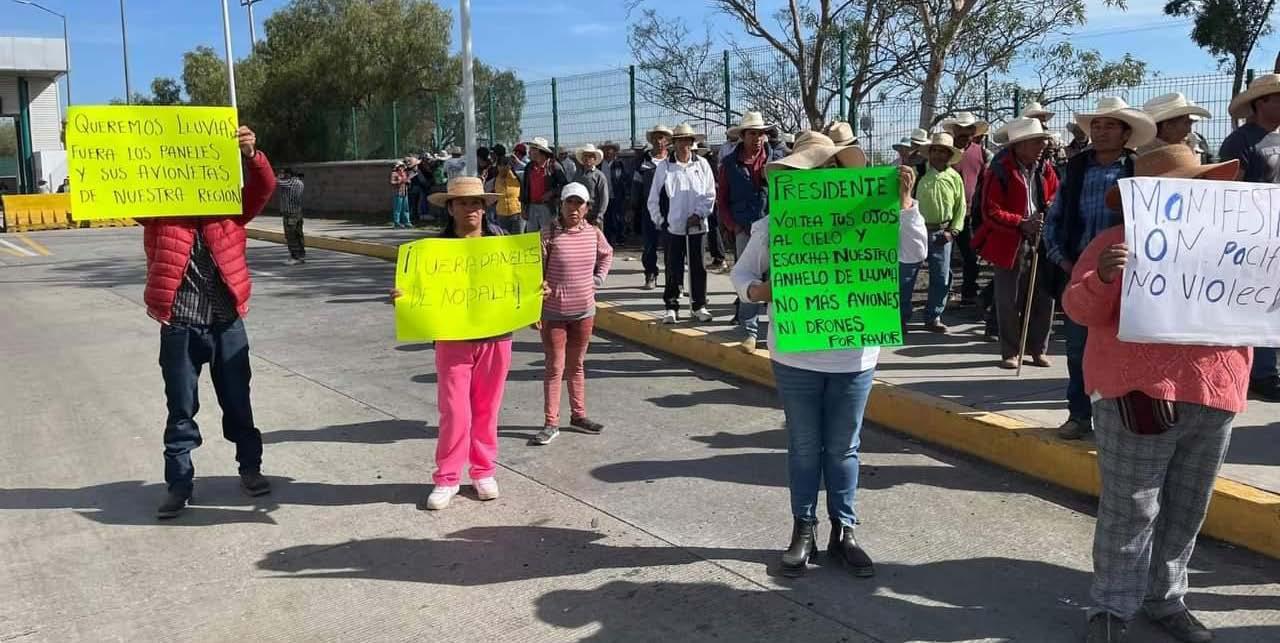 De acuerdo con los manifestantes y afectados, la empresa Atlas Energy Renewable que se dedica a la fabricación de paneles solares, presuntamente envía avionetas que se encargan de evitar la presencia de lluvias en los campos de cultivo cercanos lo que ha repercutido en la sequía que en los últimos meses ha afectado a la zona centro y el resto del país.