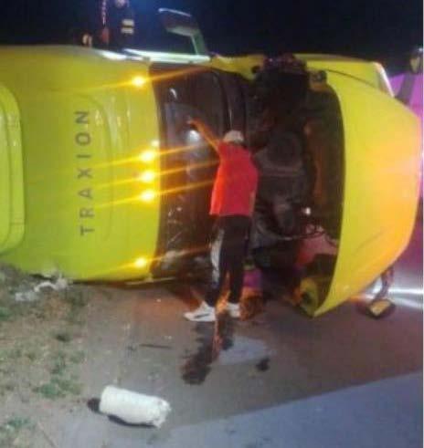 Atlacomulco, Méx.- Al menos dos personas resultaron heridas, tras la volcadura de un tráiler sobre el circuito vial Jorge Jiménez Cantú. Los hechos ocurrieron a la altura del CONALEP Atlacomulco, donde arribaron paramédicos de la Comisión Nacional de Emergencia Atlacomulco para atender a dos personas que resultaron con diversas lesiones. El reporte de la Secretaría de Seguridad del Estado de México, señaló que, por fortuna ninguna requirió traslado a algún hospital.