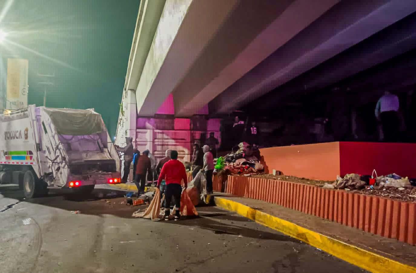 Méx.- Personal del Ayuntamiento de Toluca llevó a cabo el retiro de campamentos improvisados de personas en situación de calle, que agarraron como casa los bajo puentes ubicados en Tollocan, cerca de la central camionera. Eran personas que tenían cerca de 10 años viviendo en ese lugar que, de alguna forma, se habían adueñado del lugar, provocando inseguridad y basura.