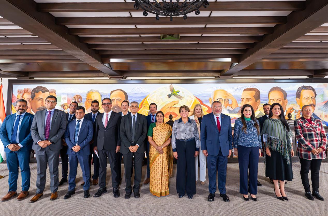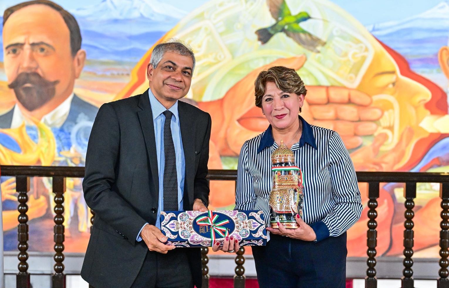 Toluca, Méx.- La gobernadora del Estado de México, Delfina Gómez Álvarez, recibió en Palacio de Gobierno al Excelentísimo Señor Embajador de la India en México, Pankaj Sharma, acompañado de empresarios de ese país. La visita tiene como objetivo consolidar proyectos de cooperación en educación digital, desarrollo agrícola, tecnología y cultura, reforzando los lazos de amistad y comercio entre ambas naciones.