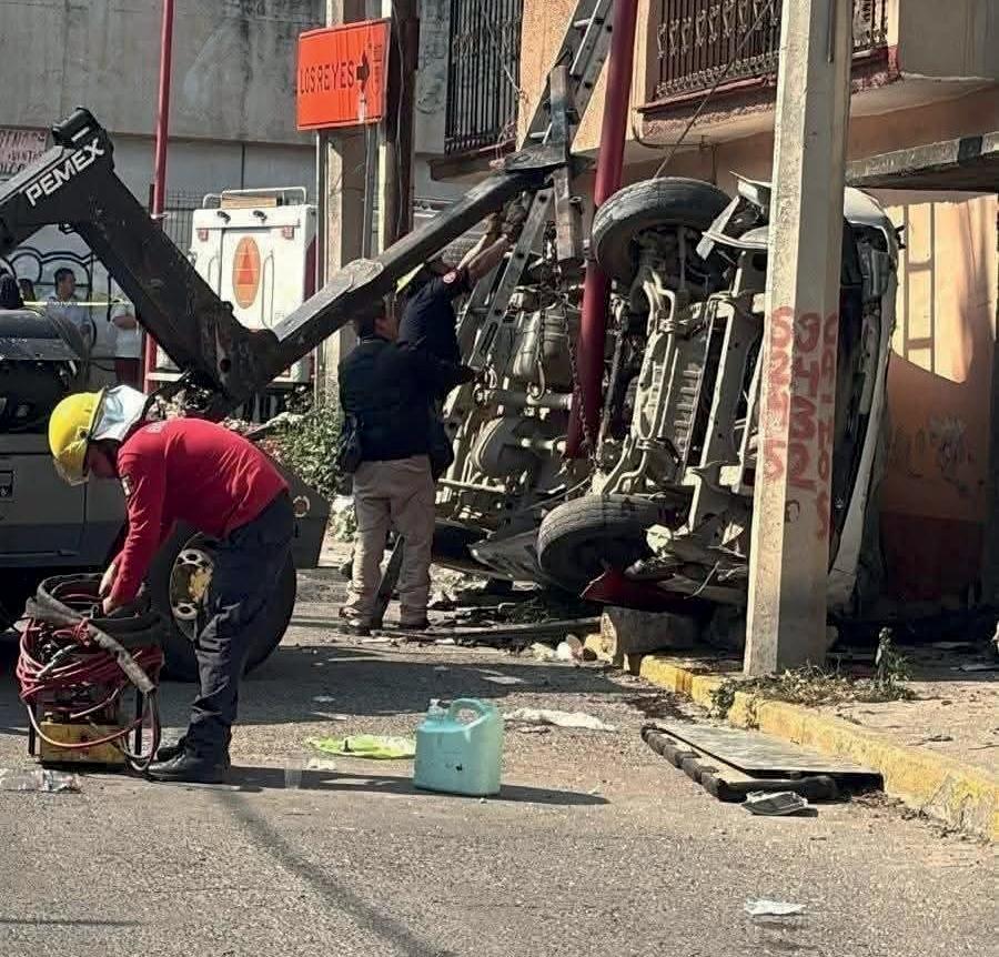 Los Reyes La Paz, Méx.- La mañana de este viernes se registró un fuerte accidente en la colonia Ampliación Emiliano Zapata, en el municipio de Los Reyes La Paz, luego de que una unidad de transporte público procedente del municipio de Chalco perdiera el control, se impactara contra un poste y posteriormente contra la fachada de una vivienda particular, lo que provocó la volcadura del vehículo.