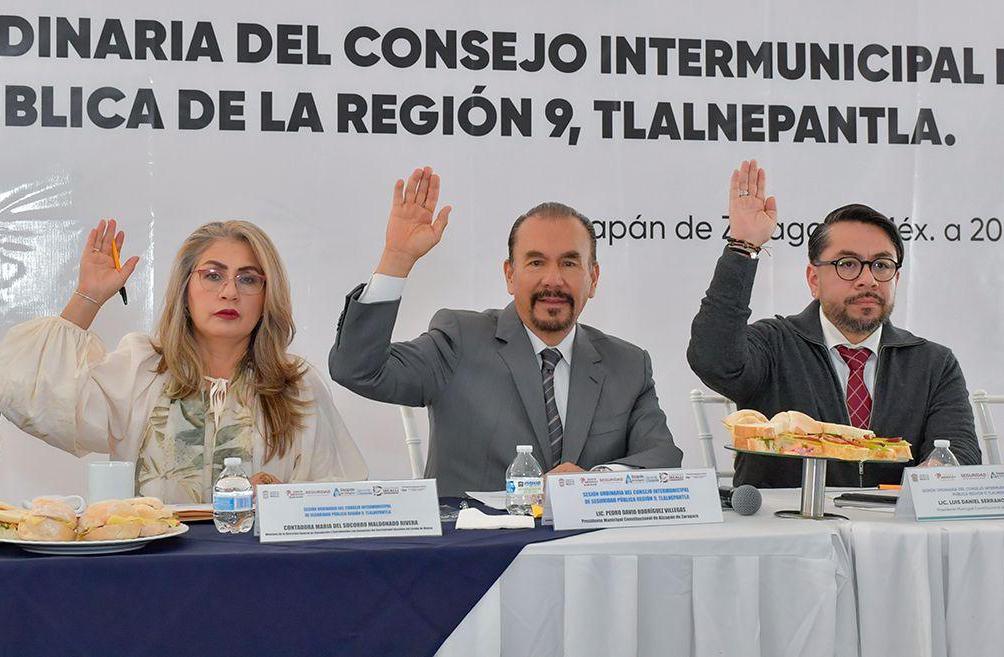 Atizapán, Méx.- Durante la Cuarta Sesión Ordinaria del Consejo Intermunicipal de Seguridad Pública, Región 9, presidida por el alcalde Pedro Rodríguez Villegas y en la que participaron, autoridades de Cuautitlán Izcalli, Tlalnepantla de Baz y de otras regiones del Estado de México, se revisaron los avances en materia de seguridad, y ahí se destacó que en Atizapán de Zaragoza se registra una disminución en delitos como robo de vehículo automotor, lesiones dolosas, violencia familiar, robo a casa habitación y robo de autopartes, rubros en los que también se tiene una baja a nivel regional.