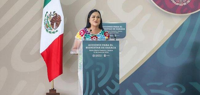 resaltó que el gobernador Salomón Jara Cruz ha encabezado asambleas de evaluación comunitaria. La secretaria de Bienestar agregó que entre las acciones realizadas en los municipios se encuentran la rehabilitación y construcción de caminos, puentes vehiculares y peatonales, agua potable y drenaje, construcción y rehabilitación de edificios y otros.