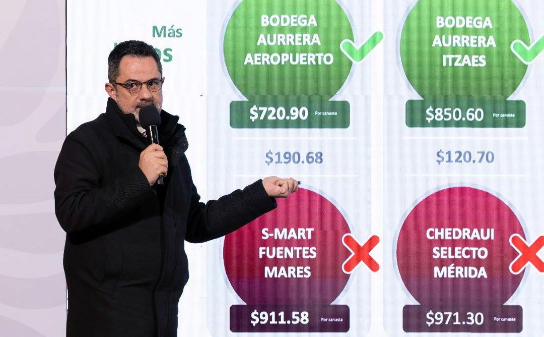 Ciudad de México.- La Procuraduría Federal del Consumidor recordó que el precio de la canasta básica debe costar máximo 910 pesos. Según el titular de la PROFECO, Iván Escalante Ruiz, los establecimientos H.E.B. y S-Mart no cumplen con este compromiso, mientras que Aprecio, sí cumple en el 100% de sus tiendas.