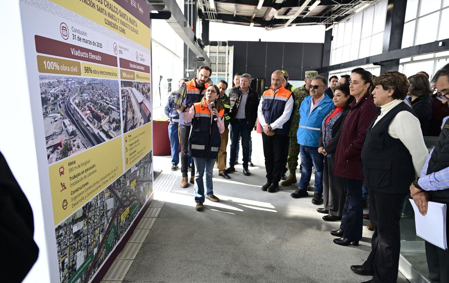 “Supervisamos con la jefa de Gobierno de la Ciudad de México, @ClaraBrugadaM, y la gobernadora del Estado de México, @delfinagomeza, el avance del Trolebús Chalco-Santa Martha”, informó la presidenta Claudia Sheinbaum en sus redes sociales.