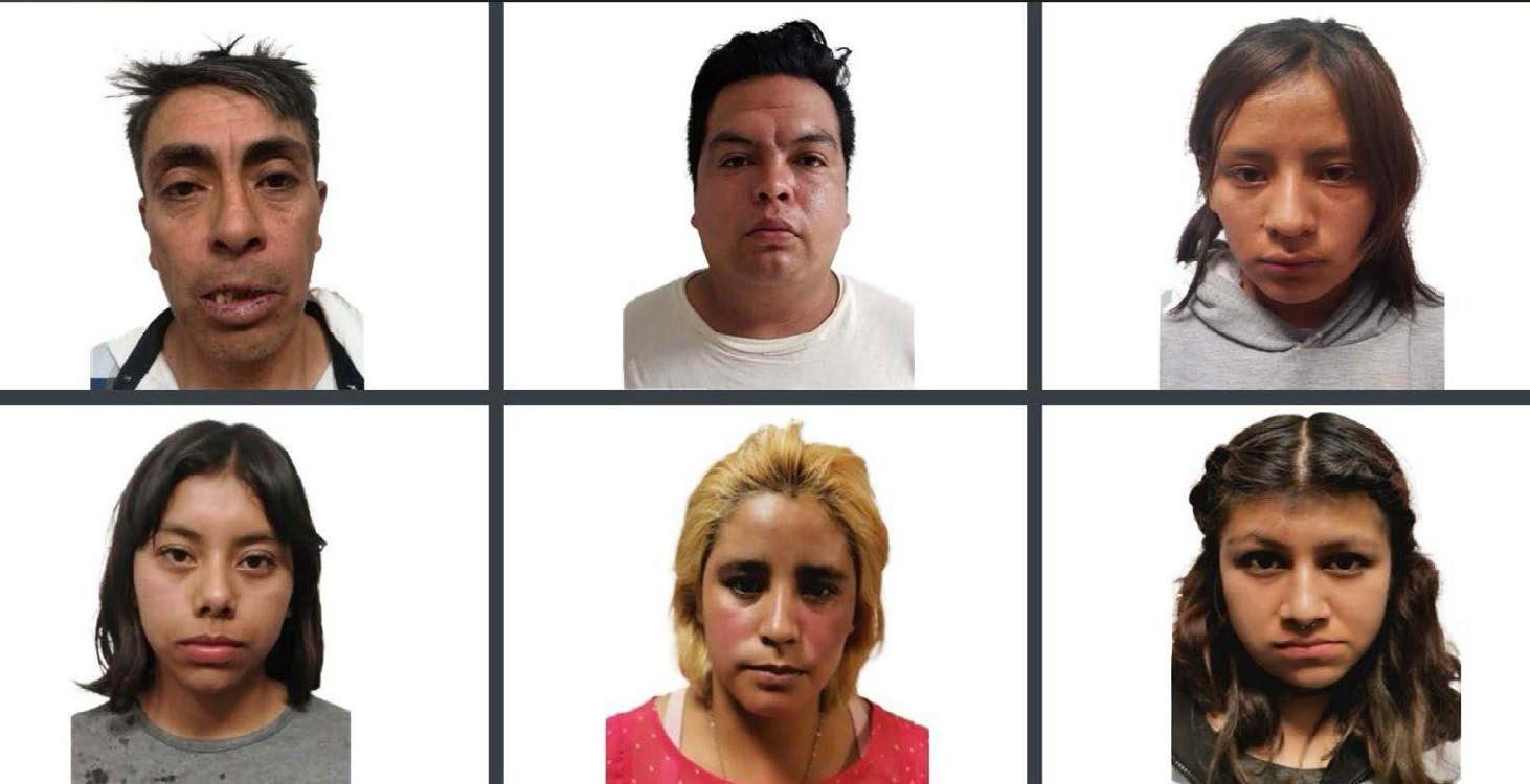 Los aprehendidos fueron identificados como Gustavo Batalla Calderón, Martín Becerril Lugo, Marilú Castillo Cruz, Karla Mayela Basurto Parra, María Guadalupe Sánchez Urbina y Dulce Denis Barrón Lugo.