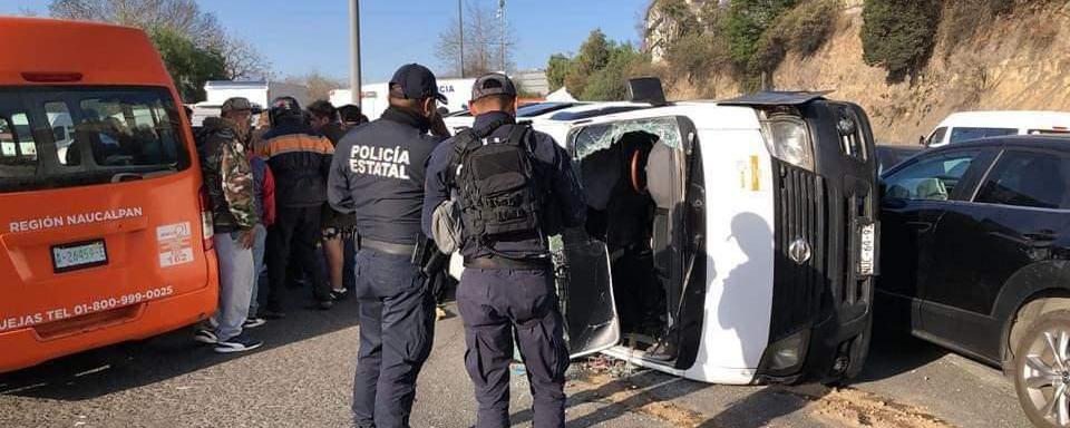 Naucalpan, Méx.- Al menos 15 personas heridas, entre ellas una embarazada, fue el saldo que dejó la volcadura de una unidad de transporte público en el municipio de Naucalpan.