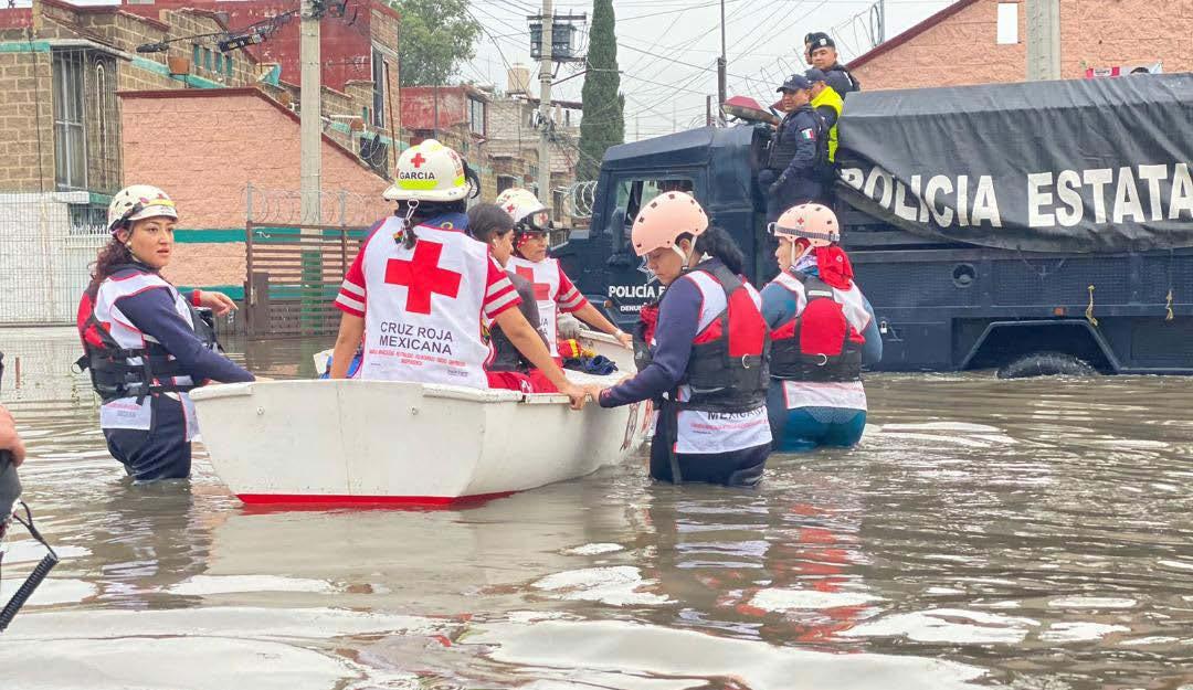 Toluca, Méx.- Derivado de las fuertes lluvias y el desbordamiento registrados en Cuautitlán Izcalli, elementos de la Cruz Roja Mexicana Delegación Estado de México, desplegó unidades terrestres y acuáticas en apoyo de los habitantes de la colonia Rancho San Blas I y II.