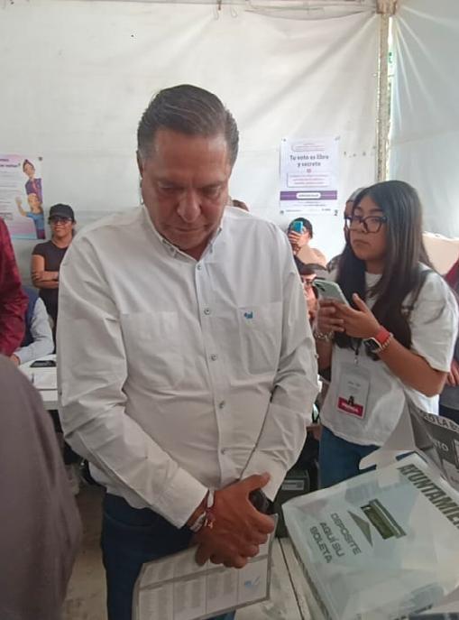 El candidato a la presidencia municipal de Toluca por la coalición MORENA, PT y PVEM, Ricardo Moreno emitió su voto, donde dijo estar lleno de energía y compromiso, y listo para trabajar a favor de la capital mexiquense. (Información: Ventura Rojas)