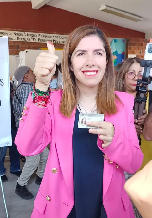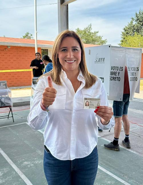 La candidata a la alcaldía de Toluca, Melissa Estefanía Vargas acudió a votar en la Colonia Electricistas, en Toluca, refiriendo que con mucho entusiasmo acudió a ejercer su derecho y resaltó que la participación democrática se hace valer en esta elección. (Información: Ventura Rojas. Foto: Jaime Arriaga)