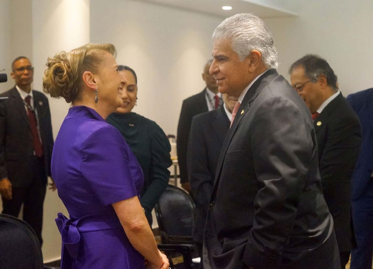 anamá.- La esposa del presidente de México, Andrés Manuel López Obrador, Beatriz Gutiérrez Mueller, acompañó ayer a la delegación mexicana que asistió a la ceremonia de toma de posesión del presidente de la República de Panamá, José Raúl Mulino Quintero, para el periodo 2024-2029. De parte del primer mandatario mexicano, Beatriz Gutiérrez transmitió al presidente José Raúl Mulino su felicitación por la victoria electoral y le deseó éxito en su gestión. Asimismo, reiteró la disposición del Gobierno de México de continuar fortaleciendo los vínculos de amistad y cooperación con Panamá, al tiempo que destacó la excelente cooperación entre ambas naciones. La esposa del presidente López Obrador y la delegación mexicana también se reunieron con el presidente de la República de Colombia, Gustavo Petro Urrego, con quien conversaron sobre las actividades de búsqueda e identificación de los restos del general José María Melo y Ortiz, ubicados en la comunidad de Juncaná,