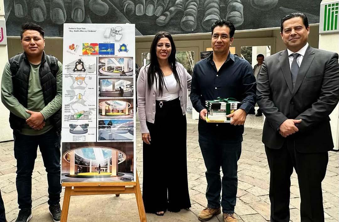 Toluca, Méx.- Con el objetivo de impulsar la creatividad de las y los alumnos de la Facultad de Arquitectura y Diseño de la Universidad Autónoma del Estado de México (UAEMéx) realizaron el Concurso de Cubierta para la Expo Sala Adolfo Monroy Cárdenas, evento encabezado por la Secretaria de Administración, Eréndira Fierro Moreno.