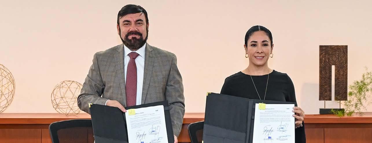 Metepec, Méx.- Con el objetivo de construir una sociedad justa, inclusiva y saludable, Carlos Maza Lara, titular de la Secretaría de Desarrollo Urbano e Infraestructura (Sedui) y Karina Labastida Sotelo, Directora General del Sistema para el Desarrollo Integral de la Familia del Estado de México (DIFEM), firmaron un convenio de colaboración para fortalecer los espacios de atención integral a las familias mexiquenses.