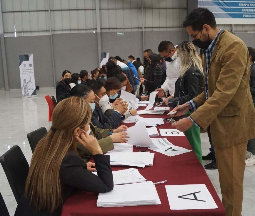 ción de un examen de conocimientos teóricos que deberá ser aprobado. Posteriormente, los aspirantes que obtengan calificación aprobatoria, serán evaluados mediante entrevista realizada por el comité designado y los participantes mejor evaluados deberán someterse a un examen toxicológico en la fecha y hora que se indique.Finalmente, las y los seleccionados en la entrevista y con resultado satisfactorio en el examen toxicológico, serán considerados en el proceso de contratación.La Fiscalía General de Justicia del Estado de México refrenda la transparencia y calidad de sus procesos de contratación mediante convocatorias abiertas y reitera que en caso de detectar suplantación, usurpación de funciones o cualquier otra situación o conducta que pretenda alterar el proceso, la Institución actuará en consecuencia.