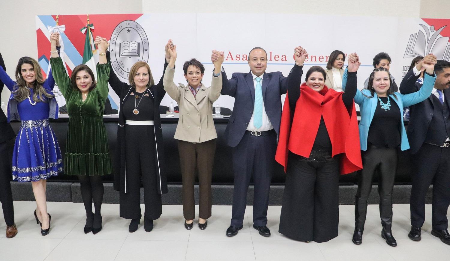 María Guadalupe Monter Flores, Secretaria; Alfonso Flores Macedo, Tesorero; Erick Murillo Bastien, Vicepresidente Zona Toluca; Teresa Peña Gaspar, Vicepresidenta Zona Valle de México; Rita Raquel Martínez Salgado, Vicepresidenta Zona Oriente; Gabriel Luis Ezeta Morales, Consejero; Flor Alejandra Kiwan Altamirano, Consejera; Edgar Rodolfo Macedo Núñez, Consejero; Aída Aíxa Chávez Magallanes, Consejera; Juan Carlos Ortega Reyes, Consejero; Martín Bernardo Hernández Rodríguez, Director del Instituto de Estudios Notariales.
