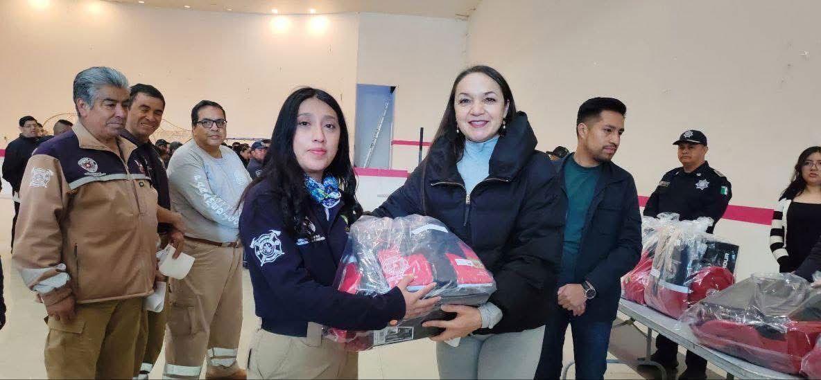 Amecameca, Méx.- Con un firme compromiso de equipar a los cuerpos de emergencia y policías, el Gobierno Para Todos, encabezado por la Alcaldesa Dra. Ivette Topete García, entregó uniformes, equipamiento y mobiliario a la Dirección de Seguridad Pública y Tránsito Municipal, así como al personal de Protección Civil y Bomberos.