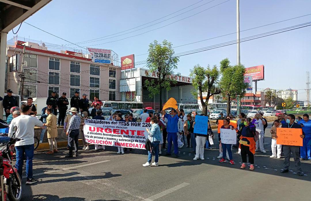 Laura Velásquez RamírezToluca, Méx.- Personal del Instituto Mexicano del Seguro Social (IMSS), bloqueó Avenida Paseo Tollocan en dirección a la Ciudad de México, con la exigencia de insumos médicos e infraestructura para atender de manera digna a las y los derechohabientes.