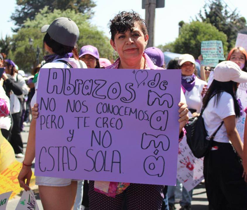 Con carteles en mano, la marea morada también expuso que el feminicidio no es el único tipo de violencia al que las mujeres están expuestas, ya que a través de testimonios, visibilizaron la violencia económica, vicaria, psicológica y sexual de las que han sido víctimas.