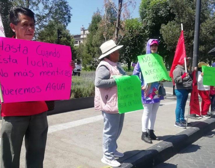 “Basta de mentiras”, “queremos agua”, “no a los cortes programados”, “el agua no es un negocio, es un derecho”, fueron algunas de las consignas que lanzaron los ciudadanos, quienes con la realización de una cadena humana frente al Palacio de Gobierno mexiquense para que las autoridades atiendan la problemática que padecen miles de mexiquenses. Y es que comunidades enteras se enfrentan a la falta de acceso a agua potable, lo que pone en peligro la salud y el bienestar de miles de personas. Es urgente que las autoridades instrumenten medidas efectivas para conservar y gestionar de manera sostenible los recursos hídricos. Se necesitan políticas que promuevan la eficiencia en el uso del agua, la reforestación de áreas clave y la protección de las fuentes de agua potable.