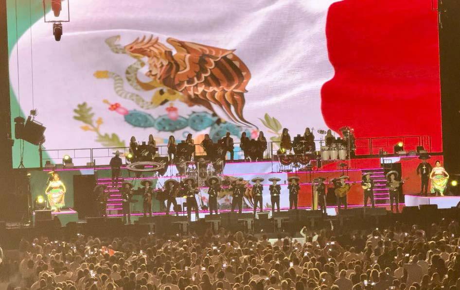 necesito”, “Por debajo de la mesa”… y hasta hizo varios popurrís con canciones que quizás debería haber cantado enteras. Lo digo más que nada por “Somos novios” o “La Incondicional”, pero bueno, el setlist estaba más que preparado y en él no había hueco ni para un saludo a los asistentes. Casi con los dedos de las manos se pueden contar las veces que el mexicano se dirigió a su público. “¿Se la saben?” Dijo como preludio a “La Bikina”, una canción que resonó en el Bernabéu como un auténtico himno. De hecho, la voz de Luis Miguel cedió ante la entrega del público. No podía faltar el mariachi y éste llenó de más fiesta el estadio. Un estadio que ovacionó los duetos virtuales que cantó Luis Miguel. “Sonríe” dejó con la boca abierta a muchos cuando en las pantallas apareció Michael Jackson. Fue una grata sorpresa al igual que “Come Fly with me” con Frank Sinatra. Éste, no es por nada y, con permiso de los muy fans del anfitrión, sí es “La Voz”