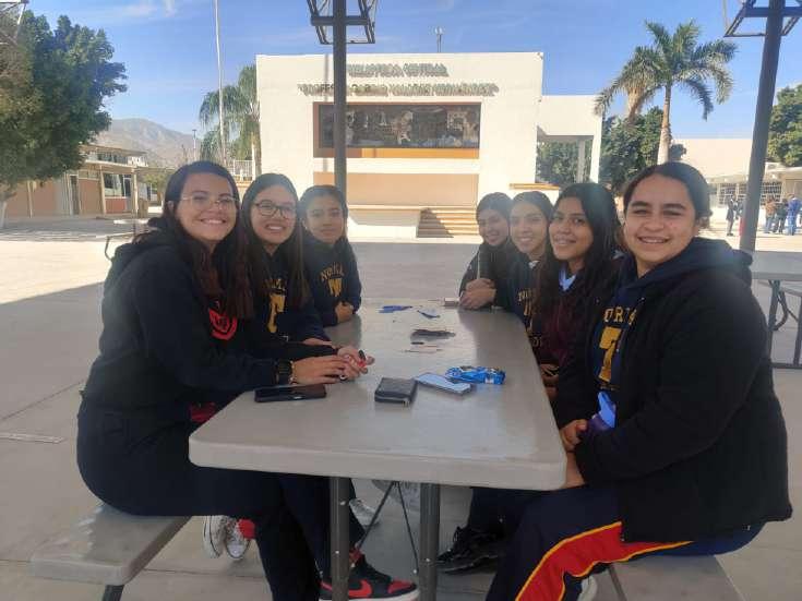 Jazmín,Regina,MaríaJosé,Aurora, Damaris, Paola y Monserrat, alumnas delalicenciaturadeprescolar,comen-