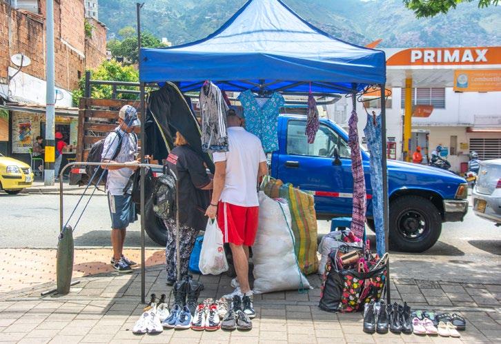 Sus proveedores consiguen la ropa de segunda en barrios como El Poblado y Laureles, y la ropa nueva de fabricantes del sector. Fuera de la ropa convencional, María del Carmen también ofrece zapatos y bolsos codiciados por las mujeres de Moravia.