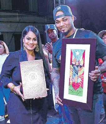 Martín “Machete” Maldonado es reconocido por la alcaldesa de Naguabo, Miraidaliz Rosario Pagán.