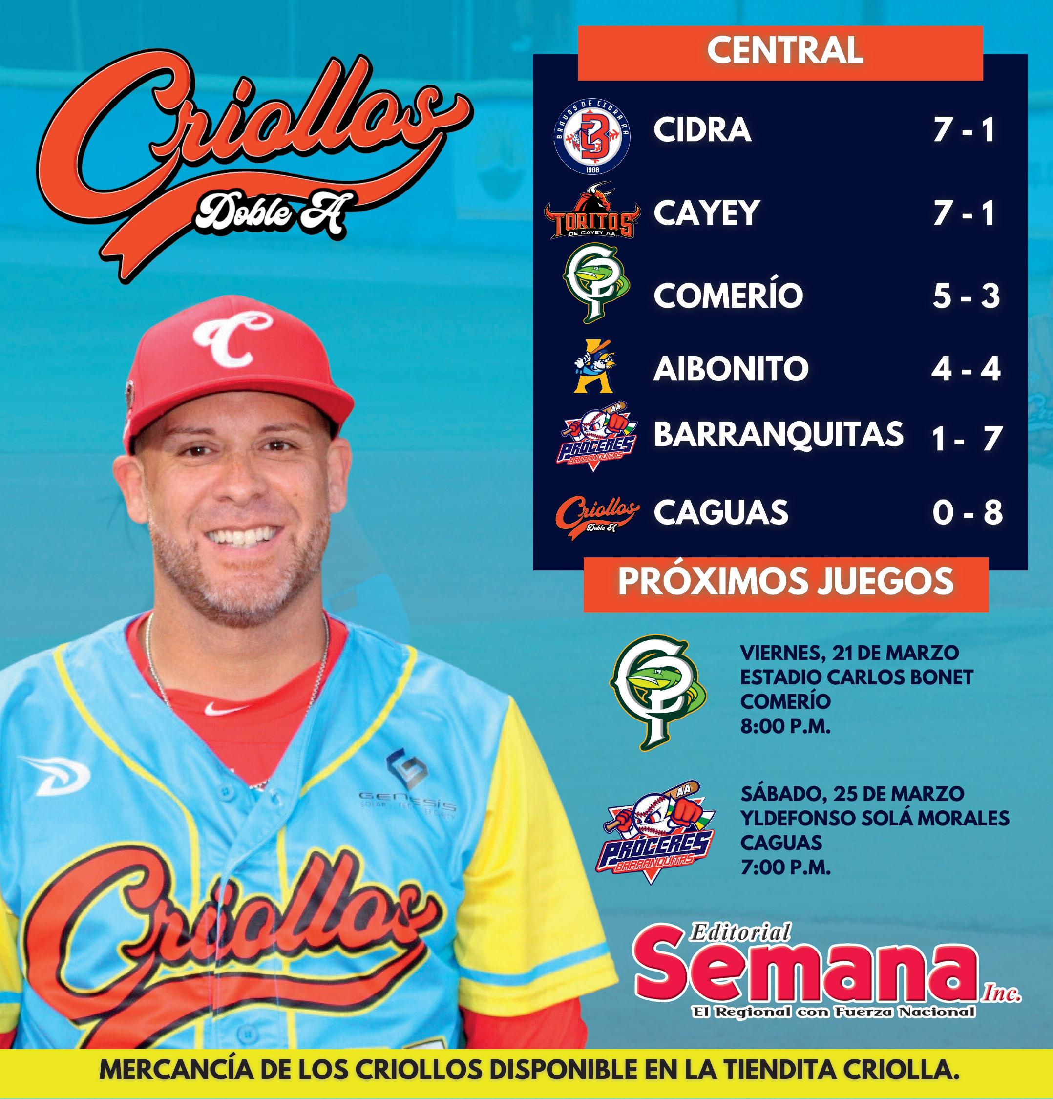 Los eternos archirivales Toritos y Bravos comparten el primer puesto de la sección Central. Cayey lleva seis victorias en línea, mientras Cidra cuenta con una cadena de tres triunfos.