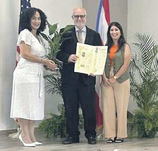 El Dr. Raúl E. Macchiavelli recibe una Proclama de Felicitación por la celebración de la Asamblea y reconocimiento por el excelente trabajo que Extensión Agrícola realiza con grupos y comunidades de todo Puerto Rico, firmada por el alcalde de Juncos, Alfredo “Papo” Alejandro. La misma fue entregada por la directora de Prensa y Comunicaciones del Municipio, Yasenia Dávila Frómeta,
