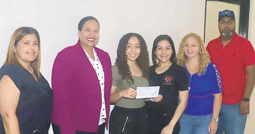 La alcaldesa de Aguas Buenas, Karina Nieves Serrano entrega un donativo de $2,000.00 a miembros de la Clase Graduanda Athena 2023 de la Escuela Superior Urbana.
